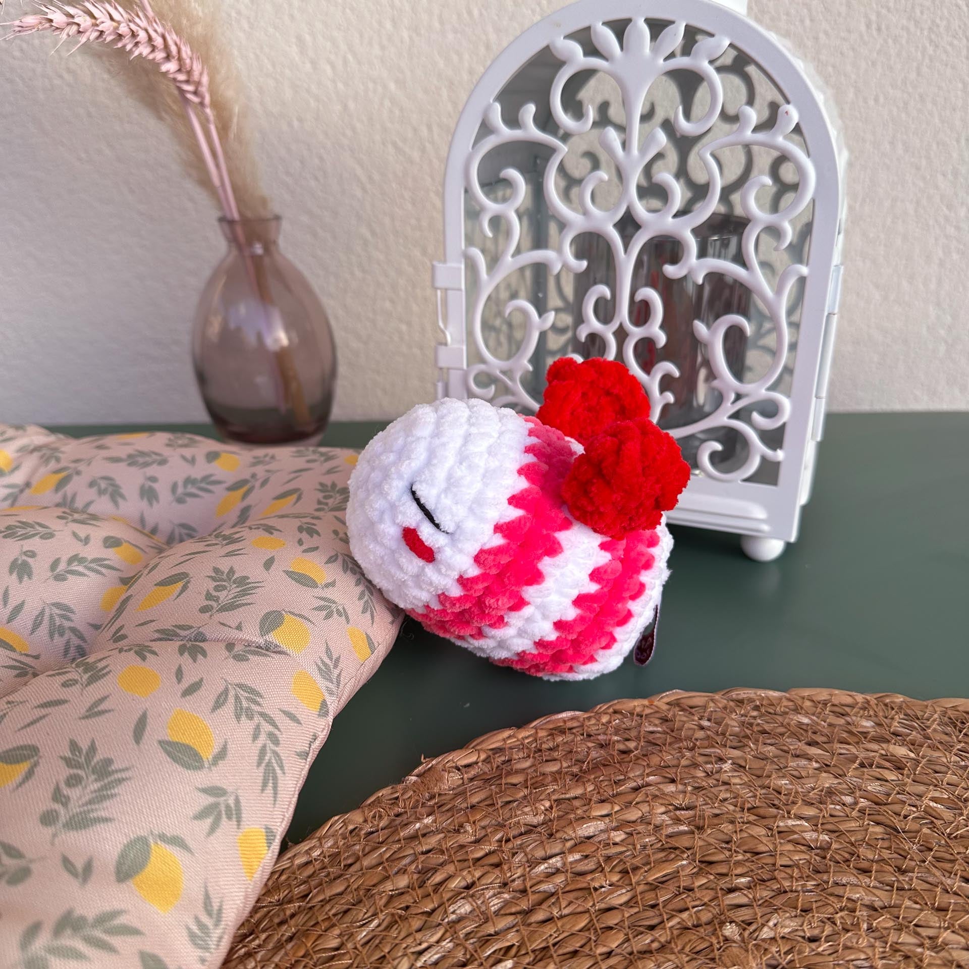 Petite abeille aussi originale que mignonne. Une peluche toute douce au corps blanc et rose, aux ailes rouges et à la frimousse brodée de fil noir.