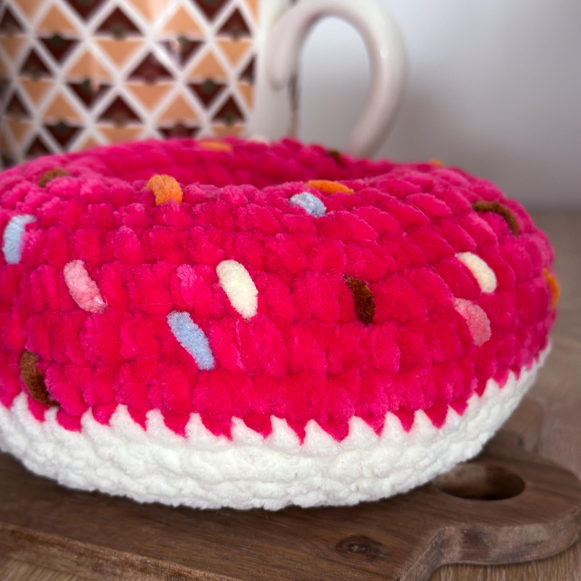 Une peluche donut moelleuse et gourmande, ornée d’un glaçage coloré et de petites paillettes sucrées. Parfaite pour ajouter une touche fun et appétissante à vos moments câlins ou à votre décoration !