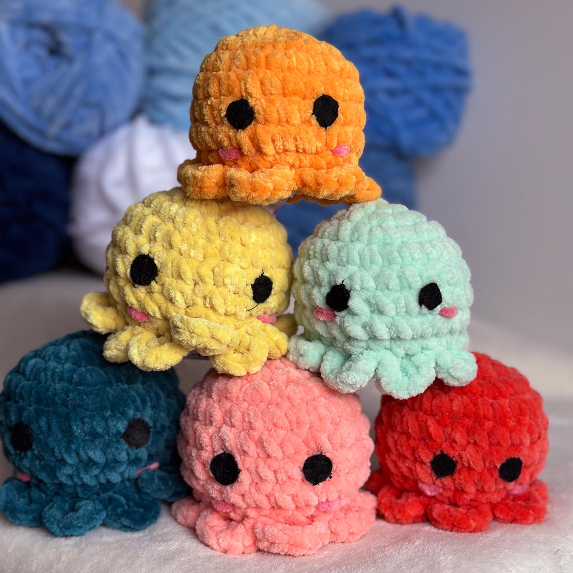 Une peluche poulpie douce et originale, avec ses minis tentacules et son regard adorablement espiègle. Idéale pour des câlins amusants ou pour ajouter une touche marine et colorée à votre décoration !