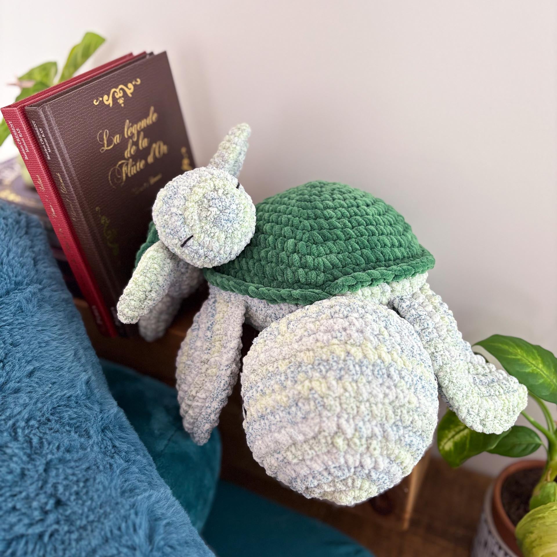 Une peluche tortue douce et apaisante, avec sa carapace détaillée et son regard adorable. Parfaite pour des câlins réconfortants ou pour ajouter une touche marine et mignonne à votre collection !